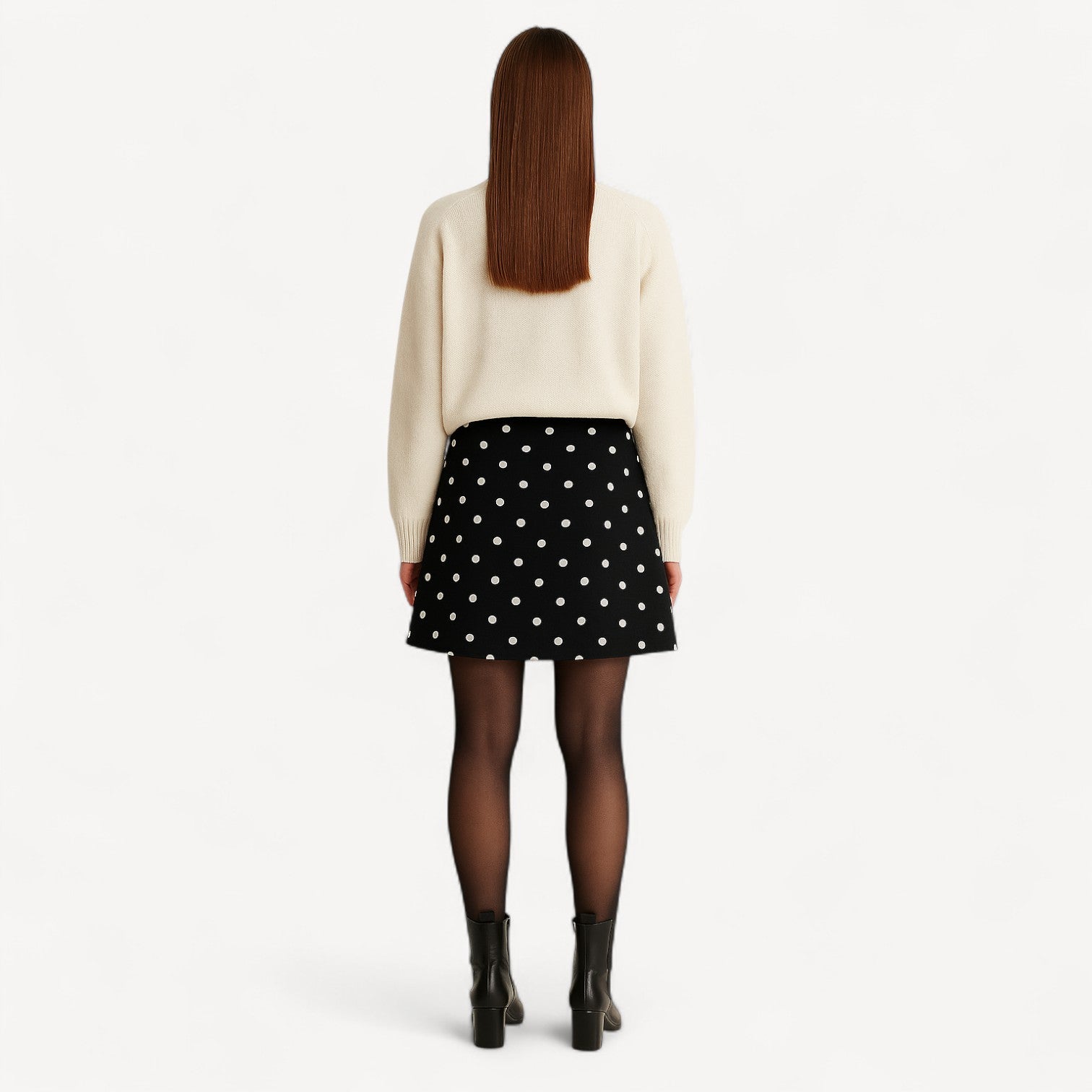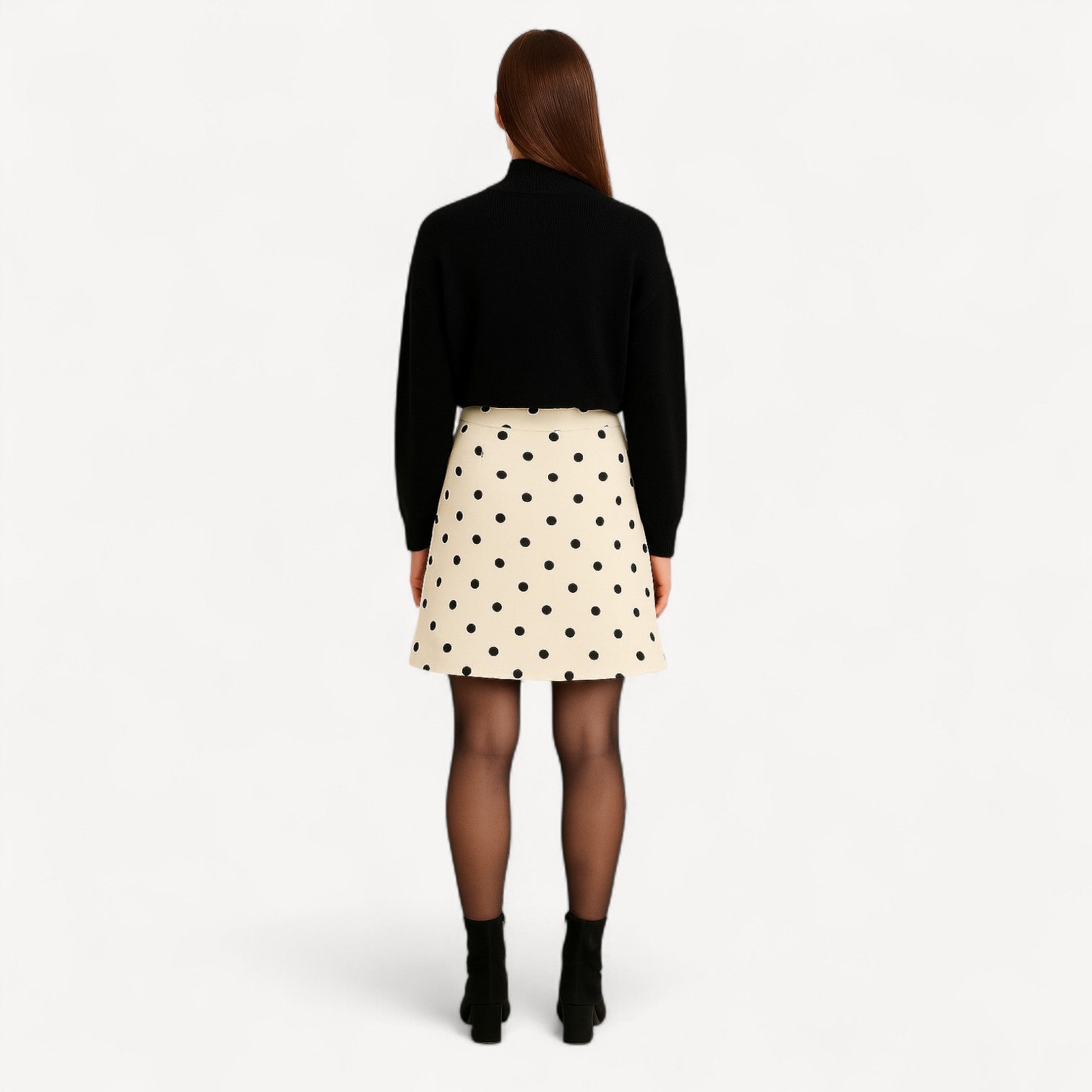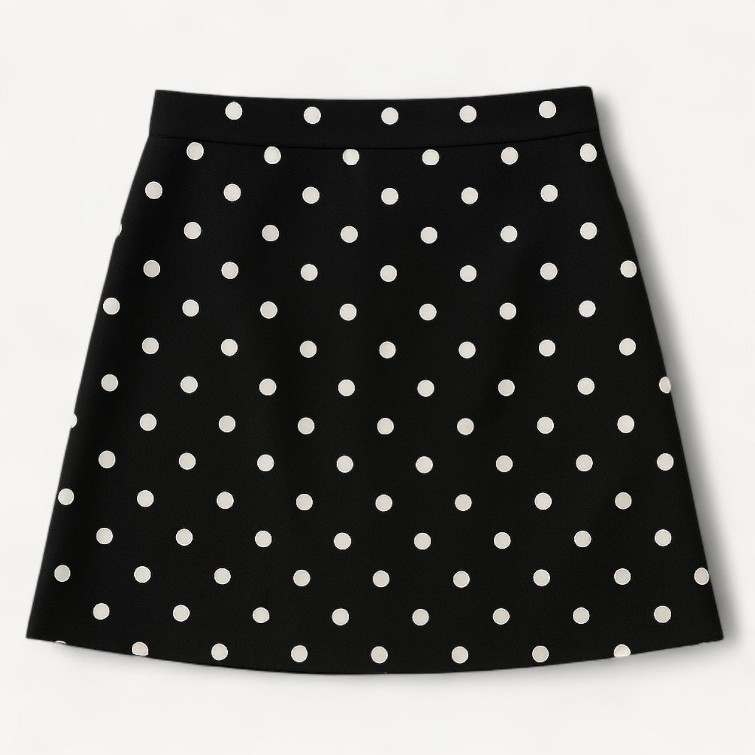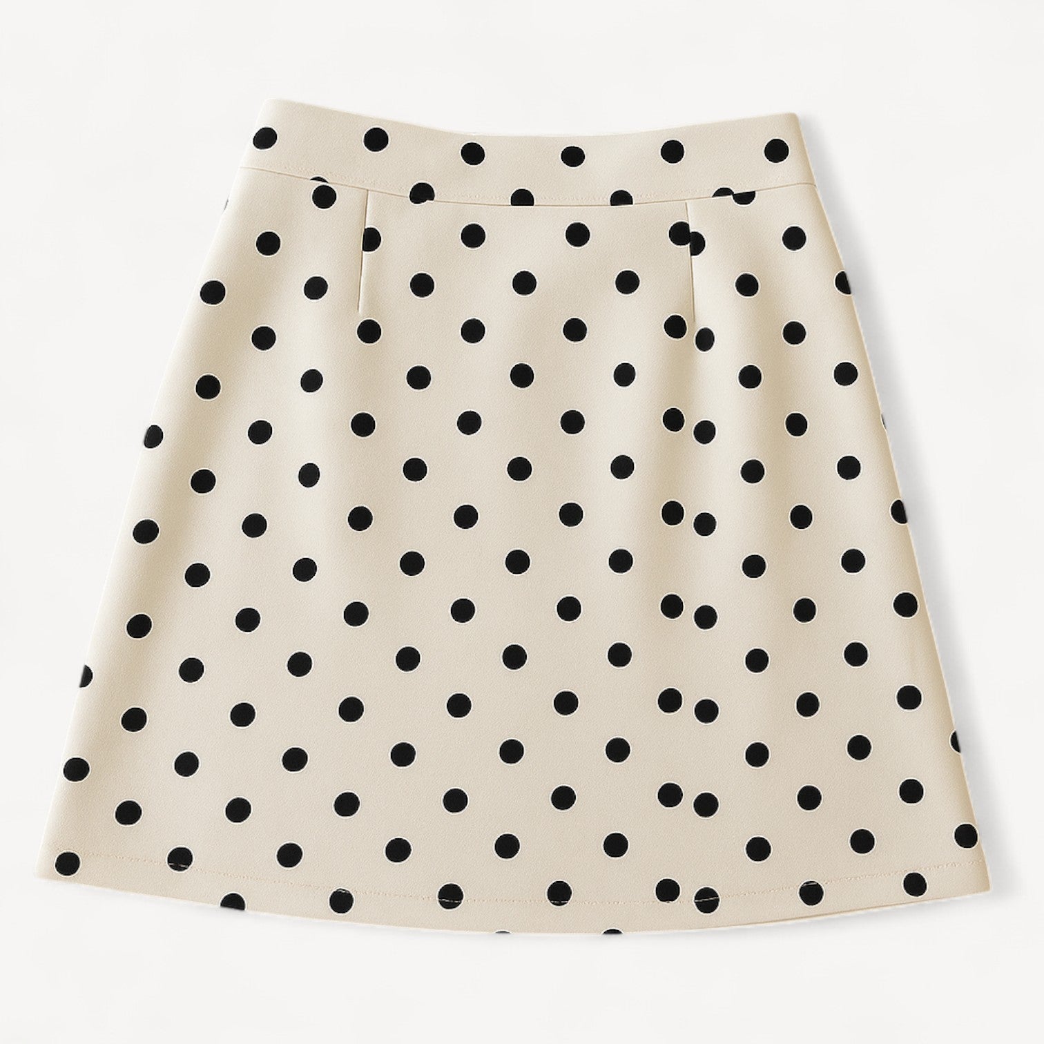 A high-waist polka dot skirt that combines retro charm with a refined silhouette. Designed for versatile styling, its flattering A-line cut ensures an easy fit that transitions seamlessly from casual afternoons to elevated evenings.