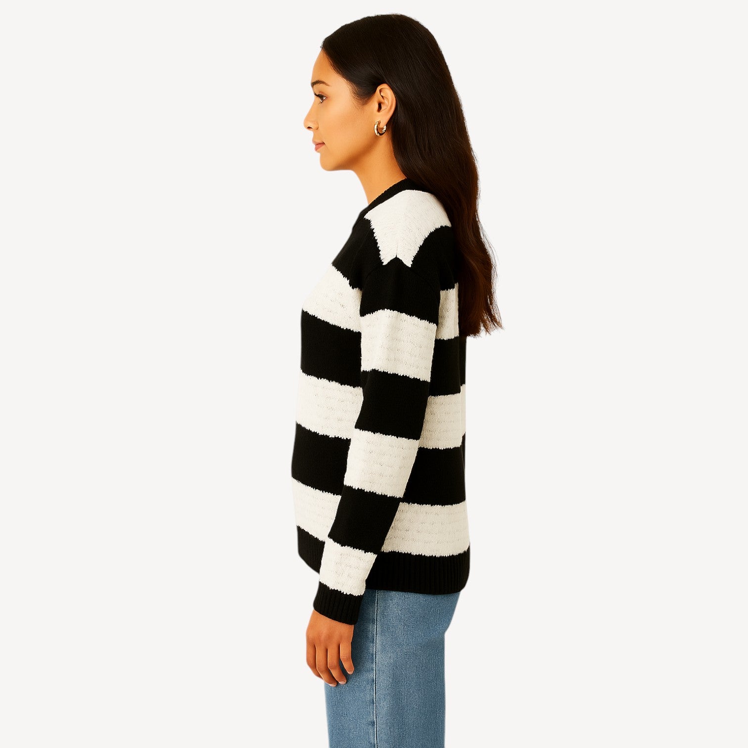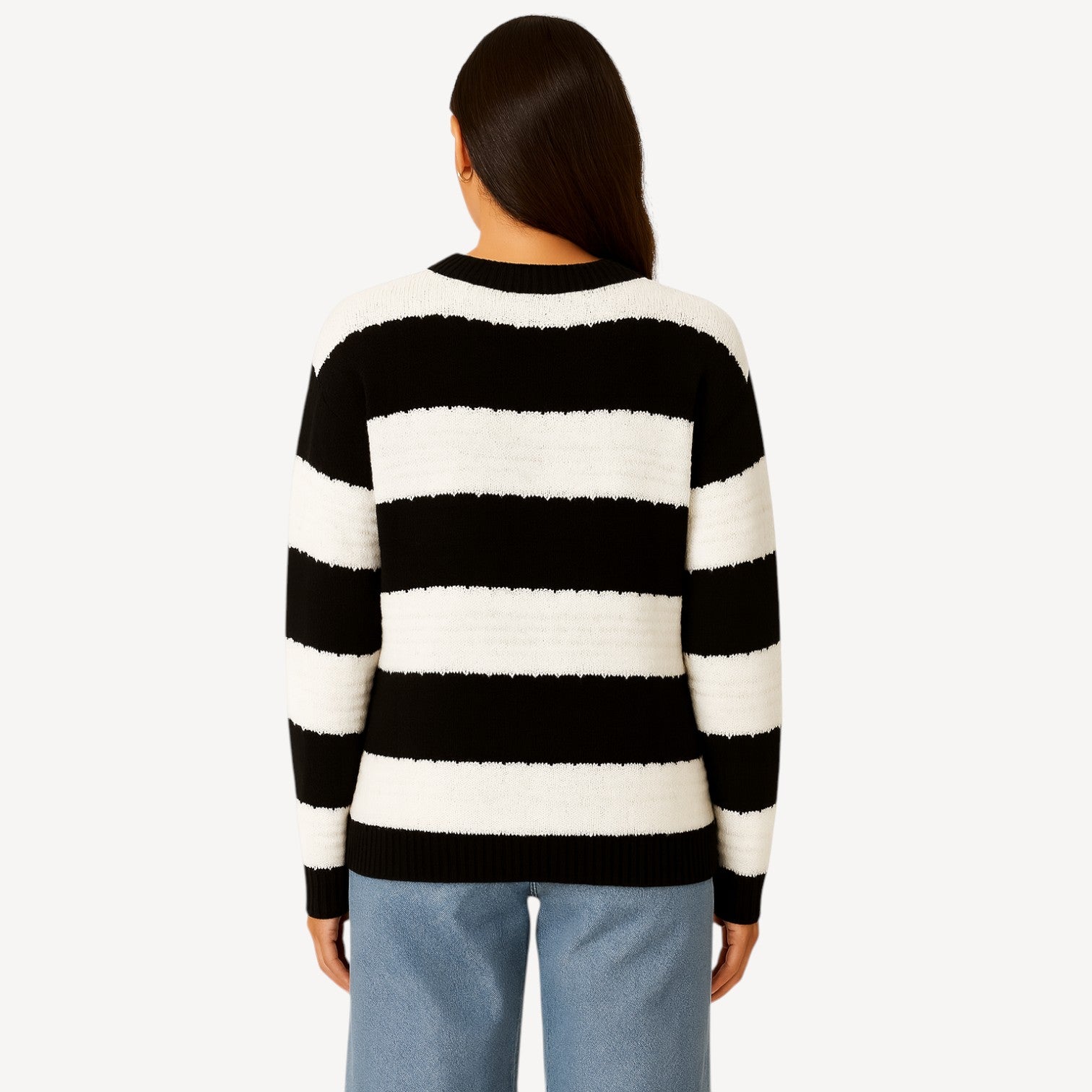 Davies | Black & White Striped Knitted Sweater Women – Cozy Crew Neck Pullover