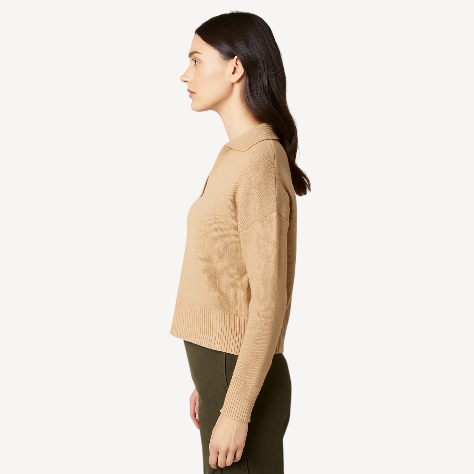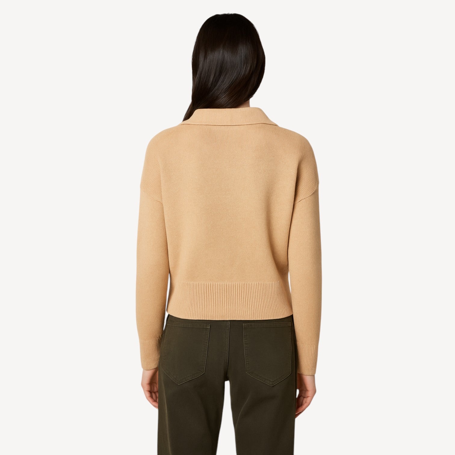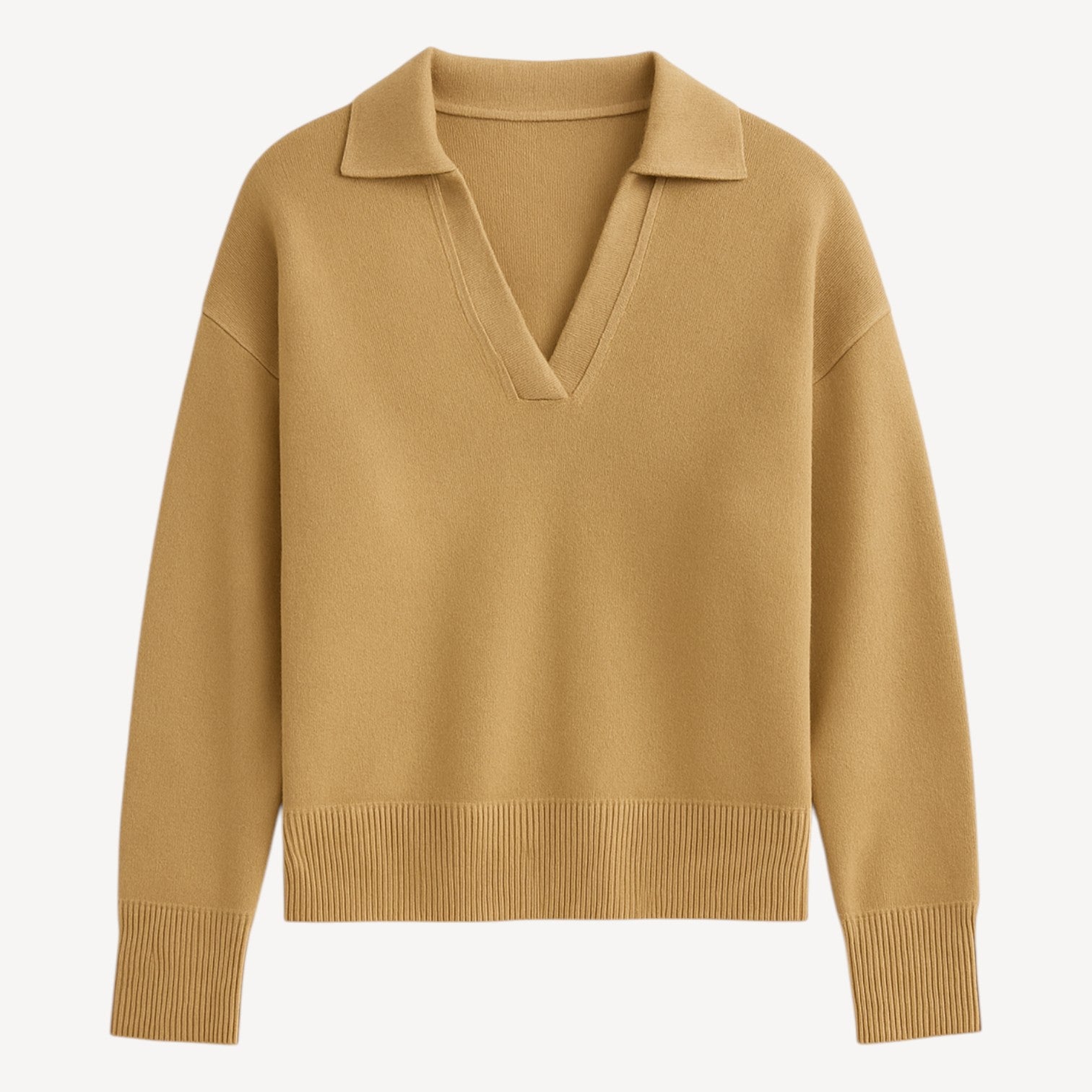 Davies | Camel Knit V-Neck Women Sweater with Collar