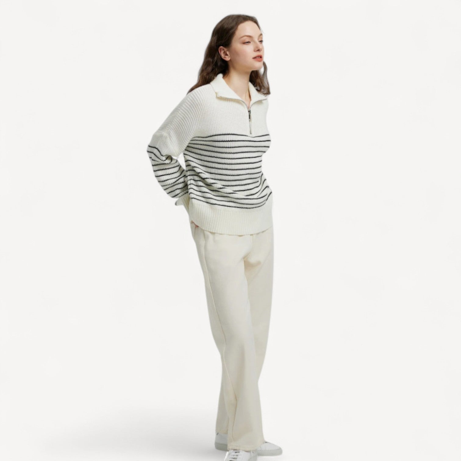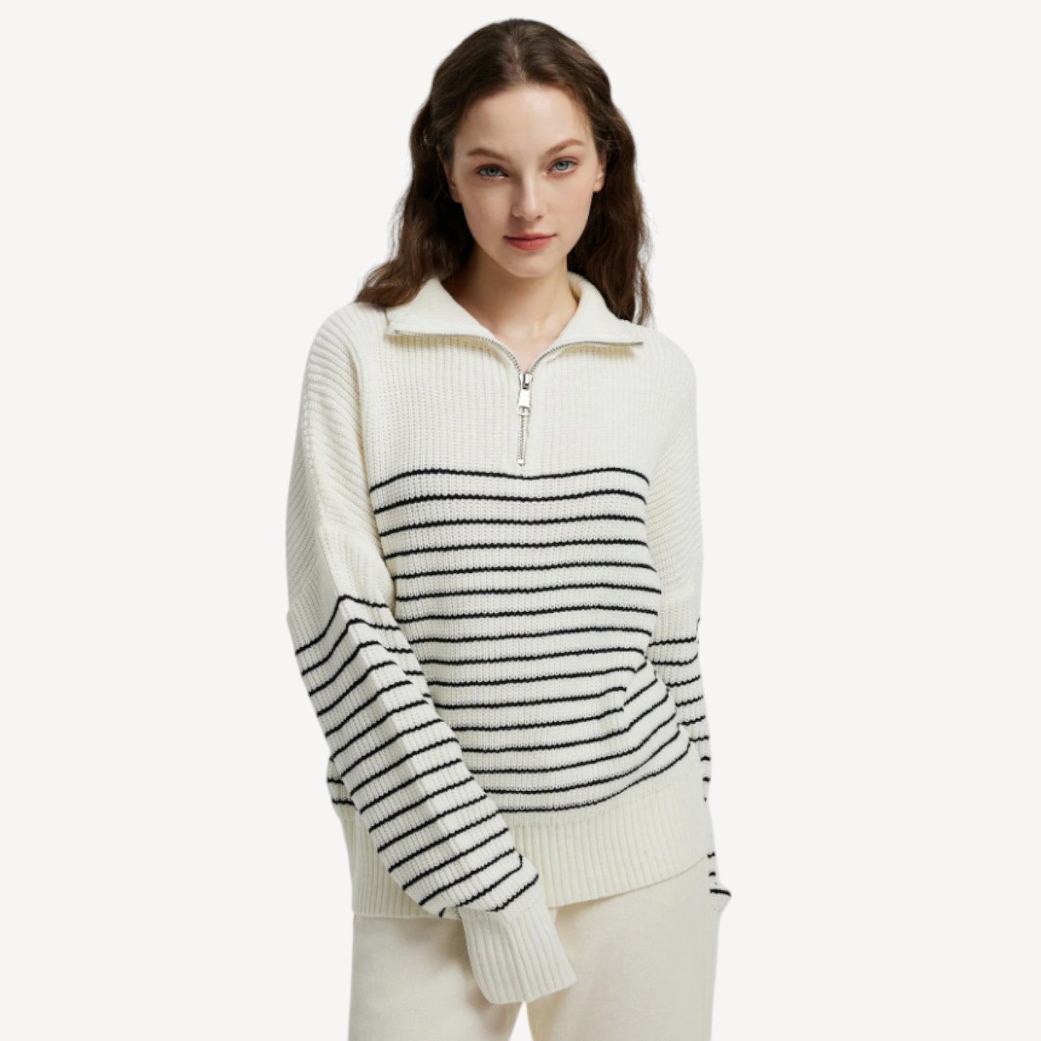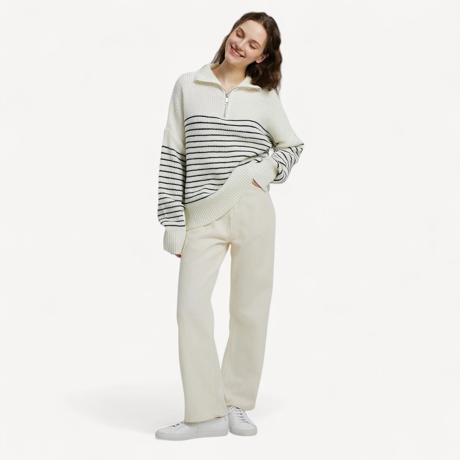 Davies | Striped Half-Zip Knit Sweater – Women’s Oversized Pullover