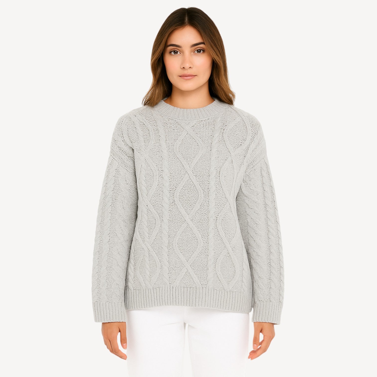 Wrap yourself in effortless style with this women’s knitted jumper, a modern take on the timeless cable-knit. Designed with a soft, cosy finish and a flattering crew neckline, it strikes the perfect balance between comfort and sophistication. The ribbed cuffs and hem give it subtle structure, while the mid-weight knit makes it versatile enough for layering through every season.
