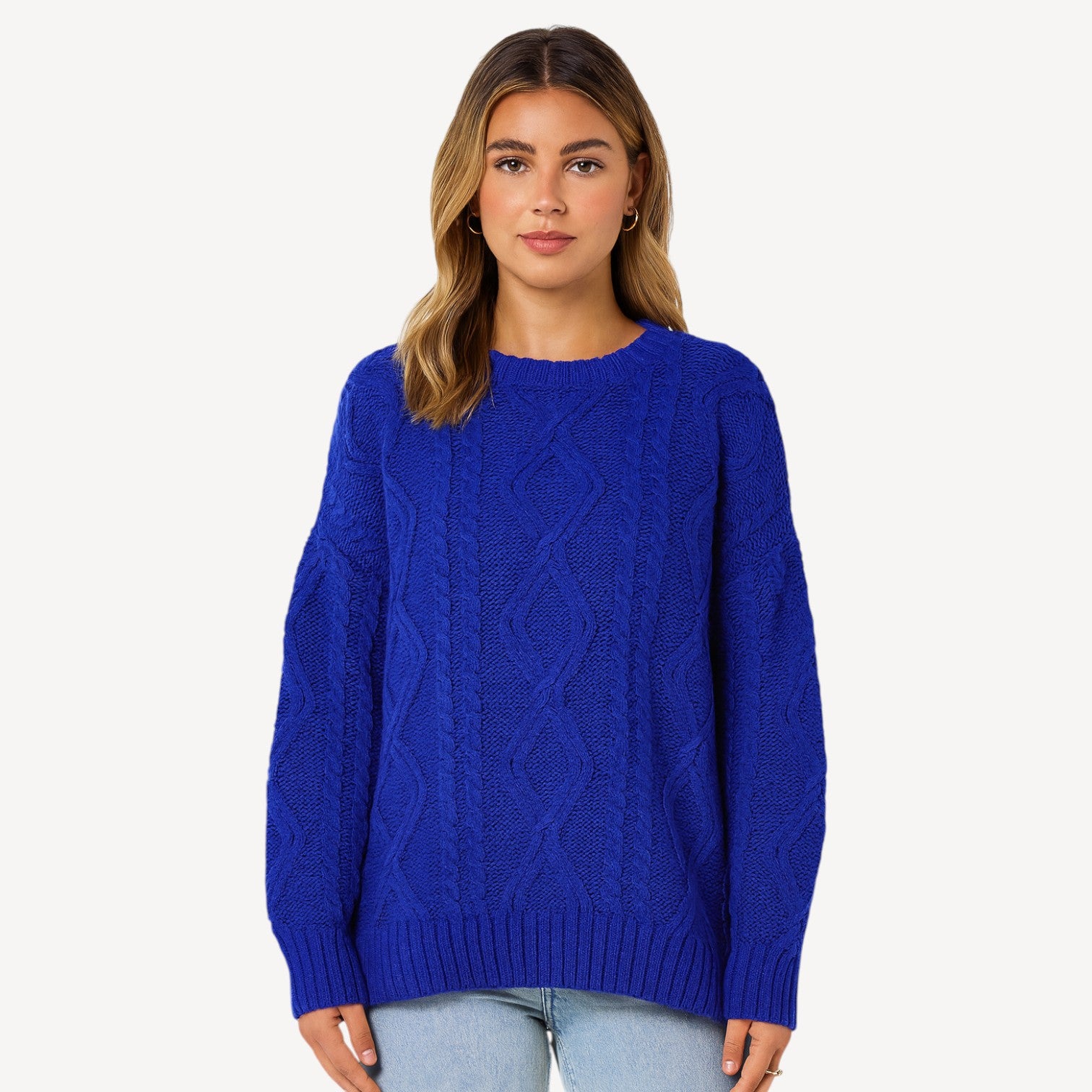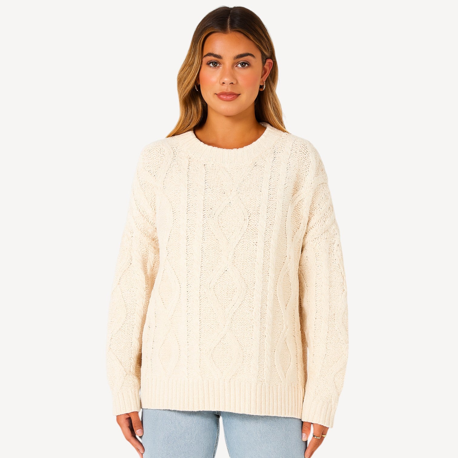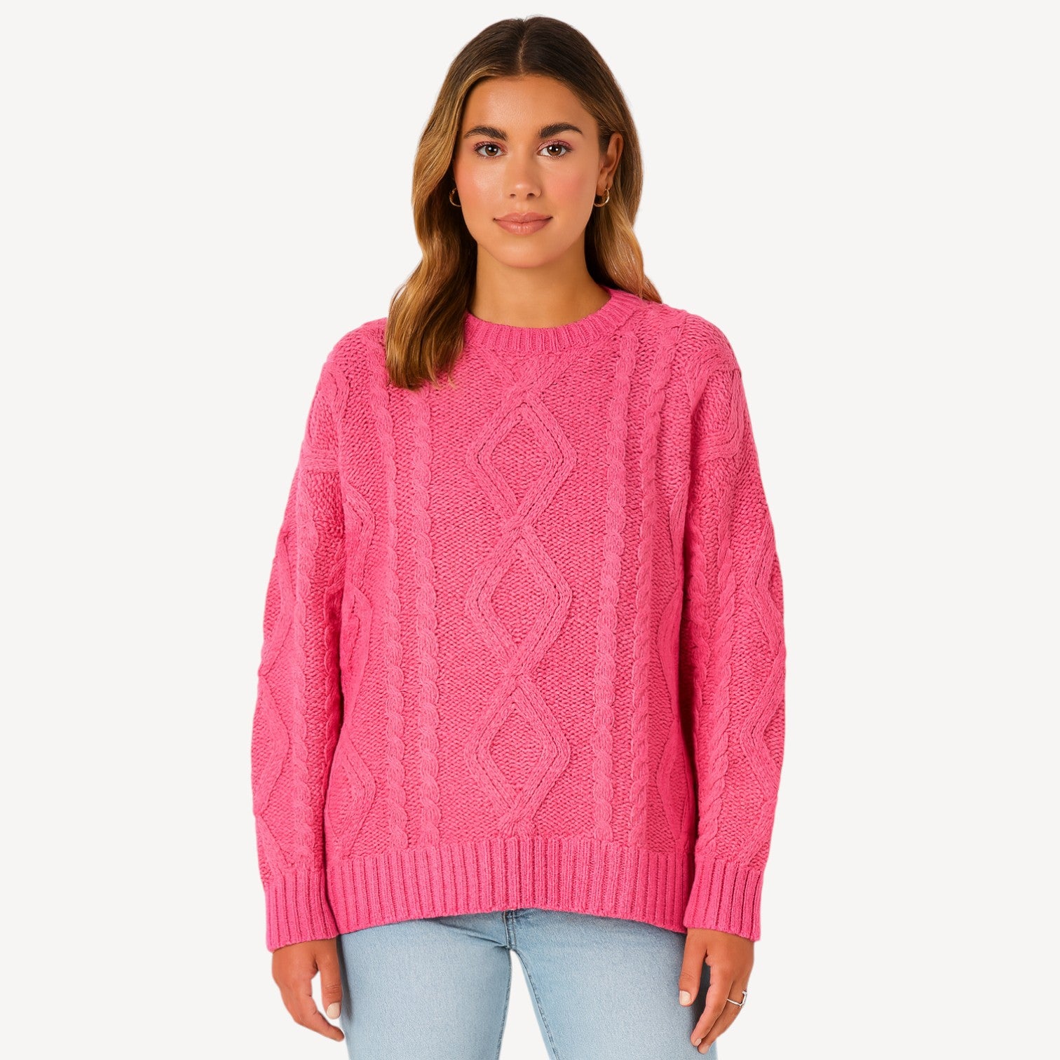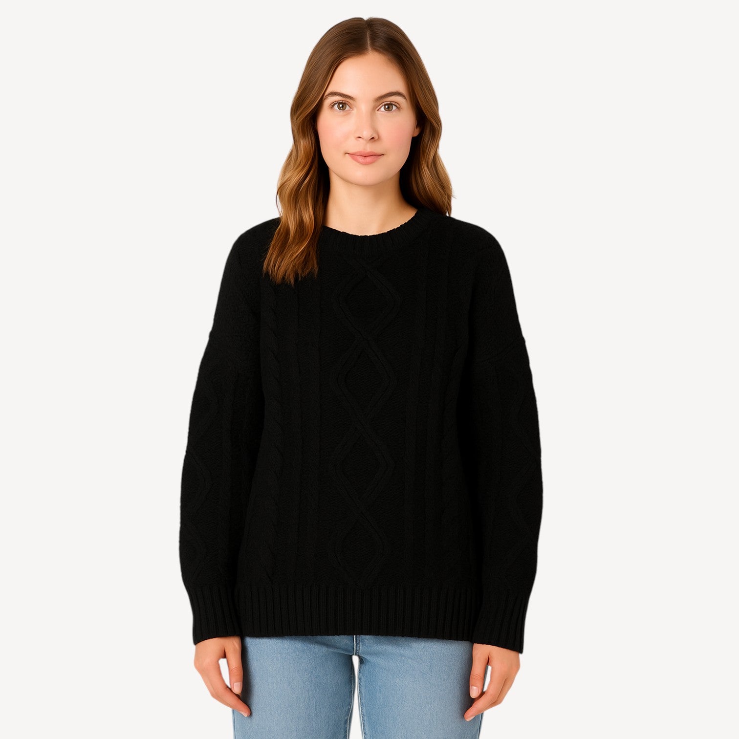 Davies | Women’s Knitted Jumper – Classic Cable Knit Crew Neck, Soft-Touch & Warm