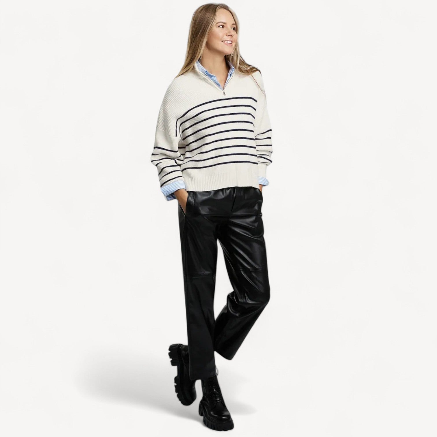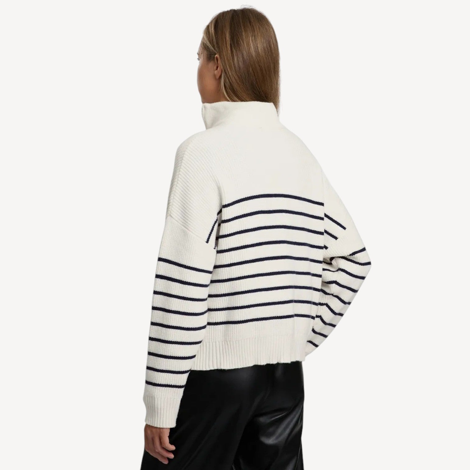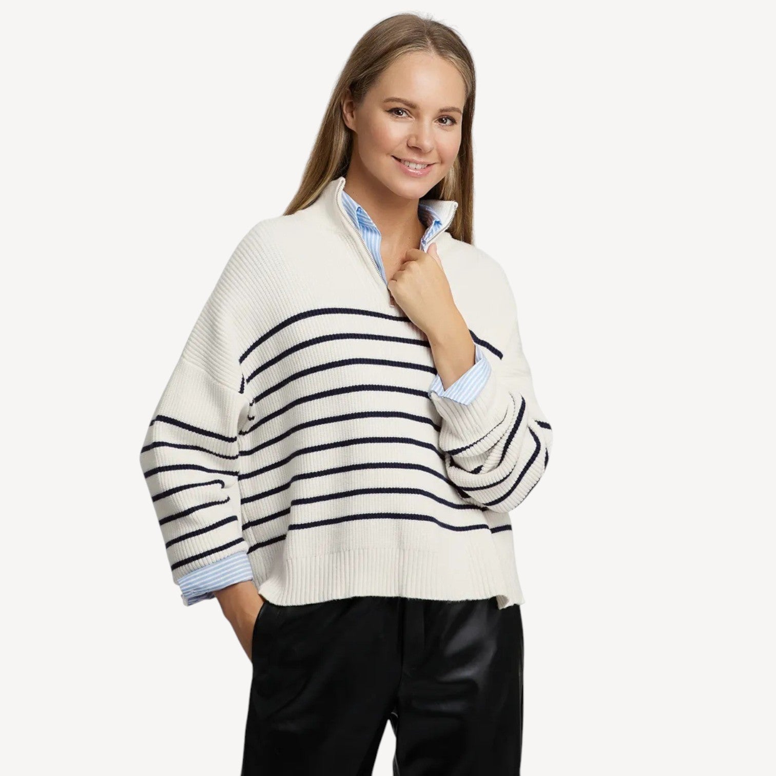 Davies | Women’s Striped Half-Zip Knit Sweater – Oversized Pullover Jumper