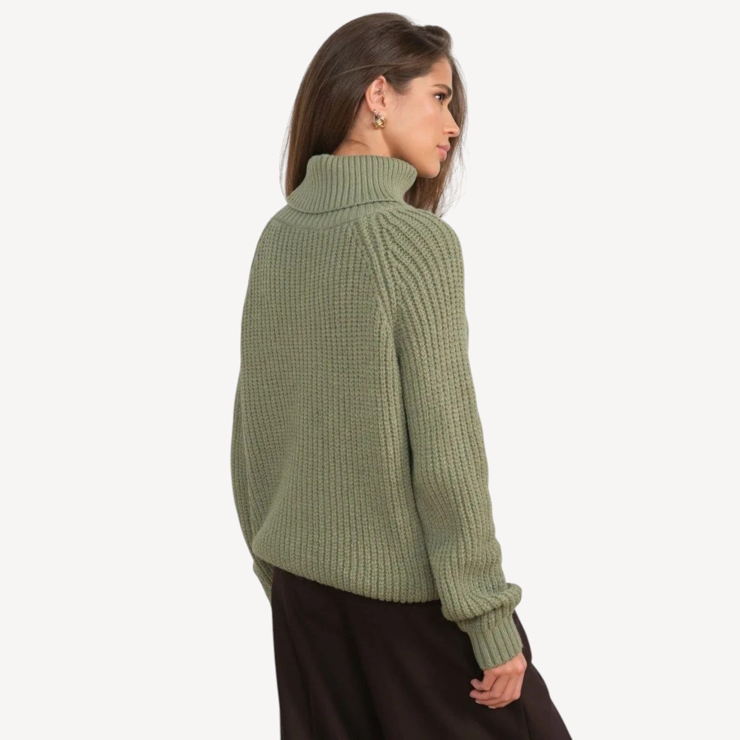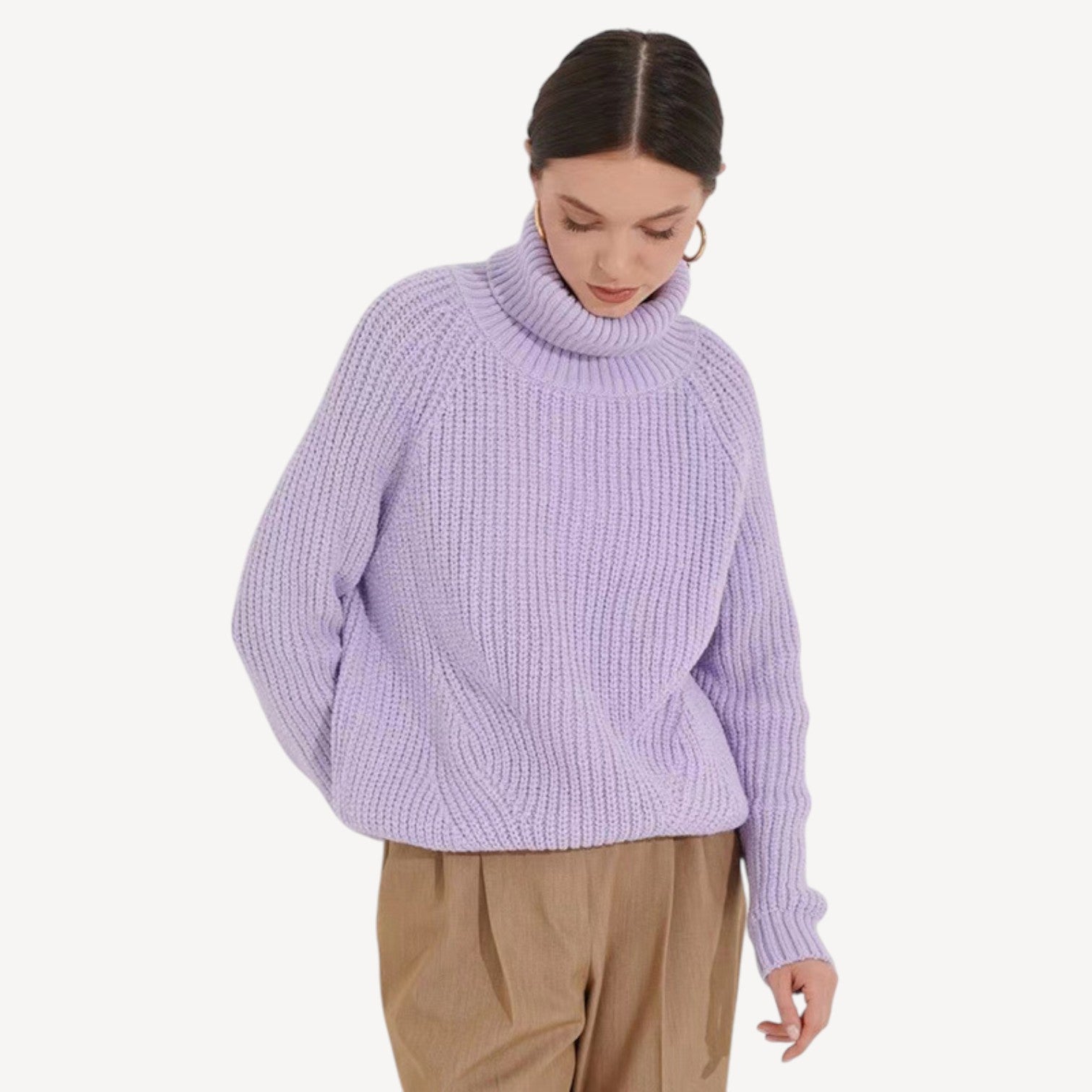 Davies | Oversized Grey Knitted Jumper Women – Ribbed Turtleneck with Modern Black Contrast