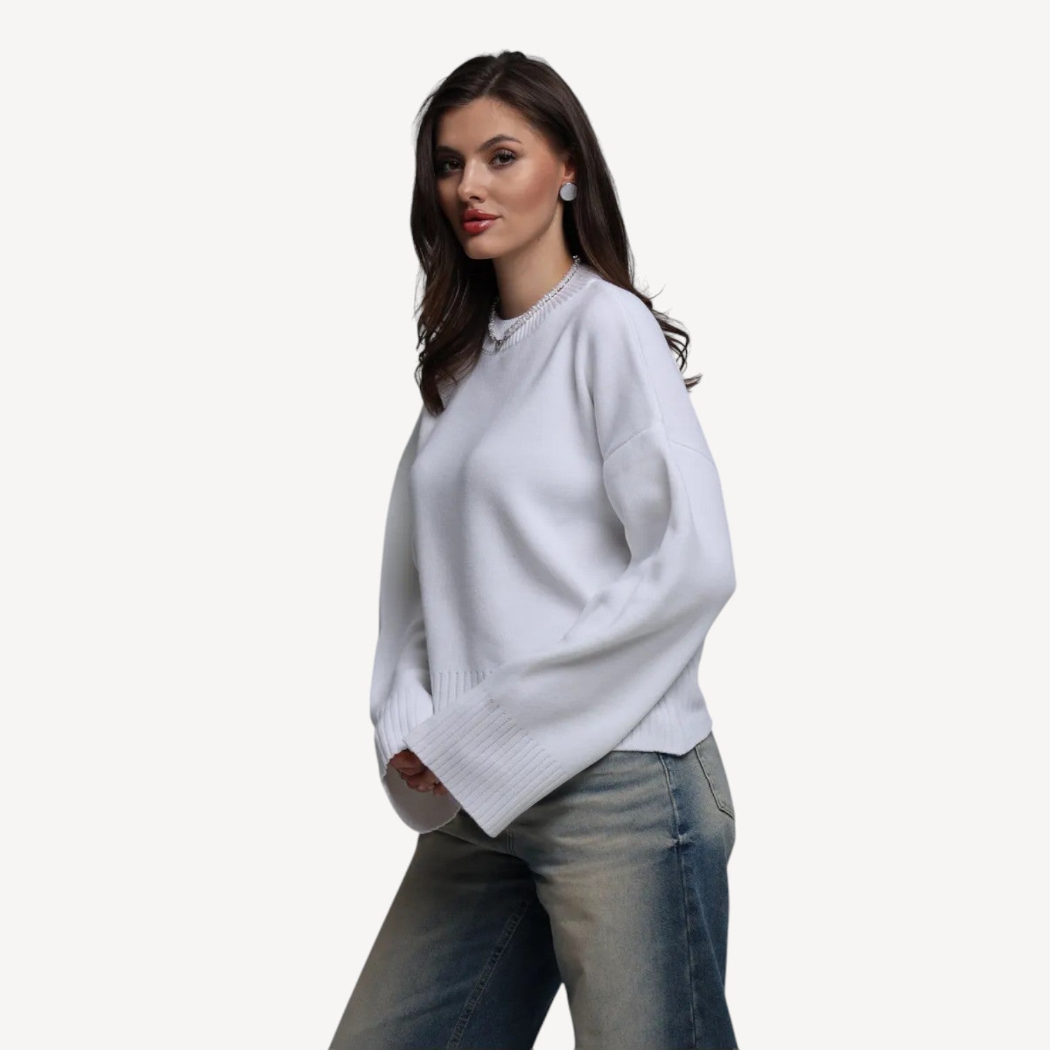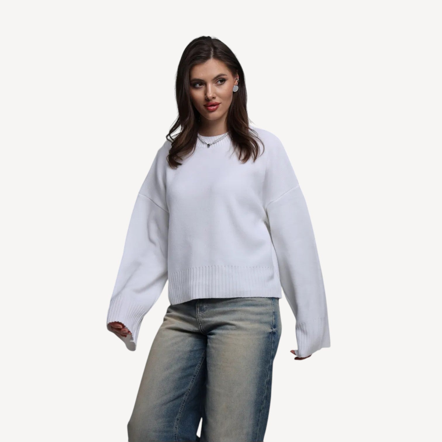 Davies | Women’s Oversized Cream Jumper with High Crew Neck