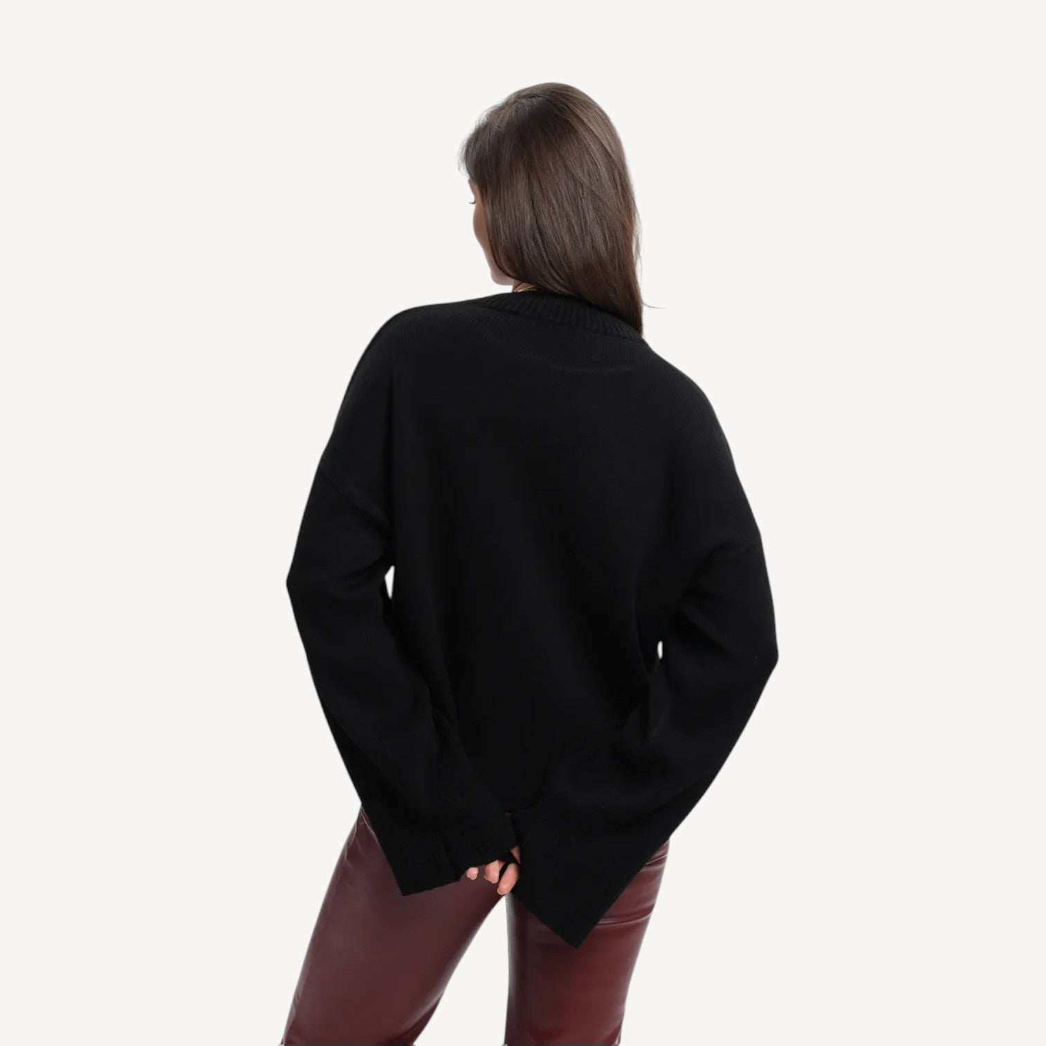 Davies | Women’s Black Oversized High Neck Jumper with Ribbed Detailing