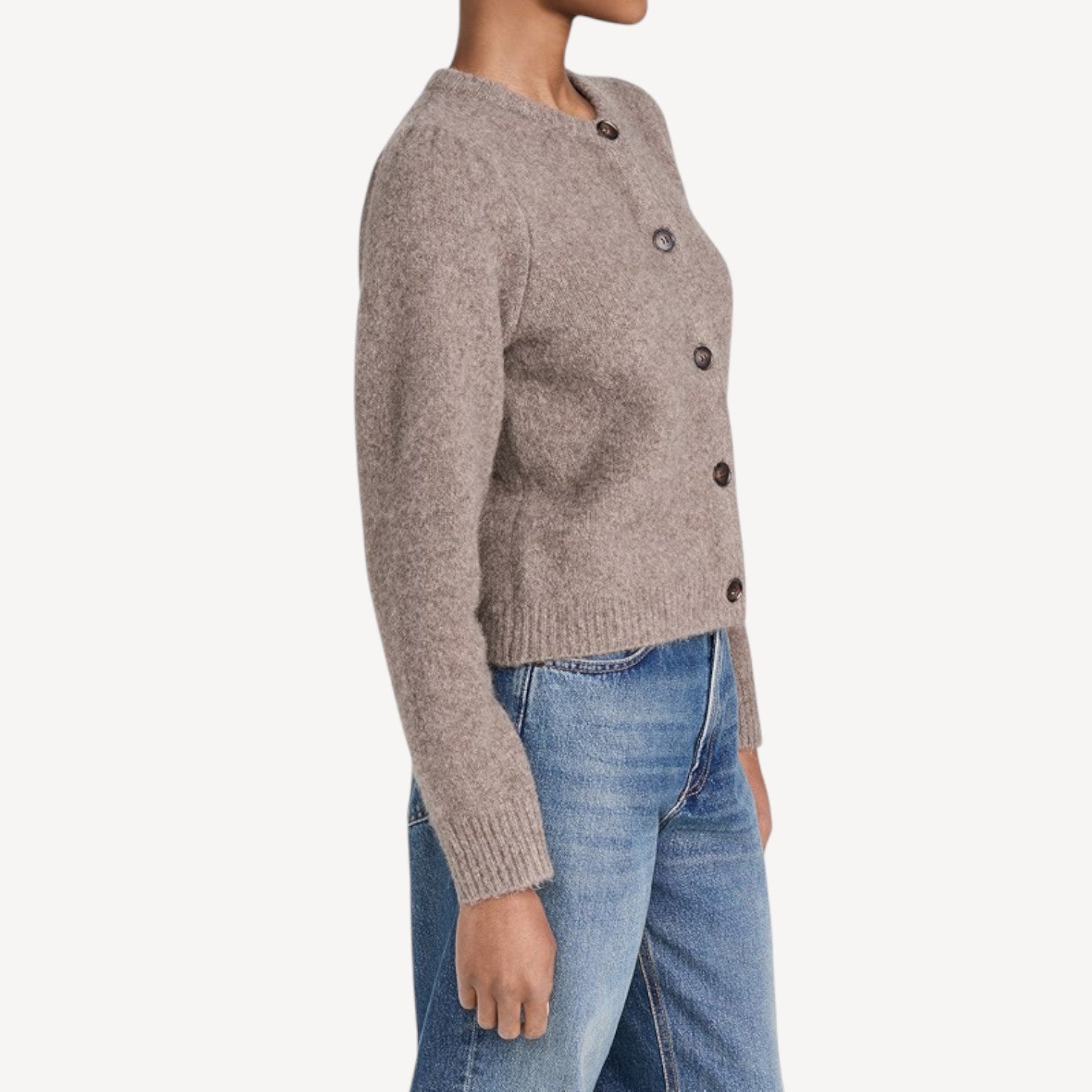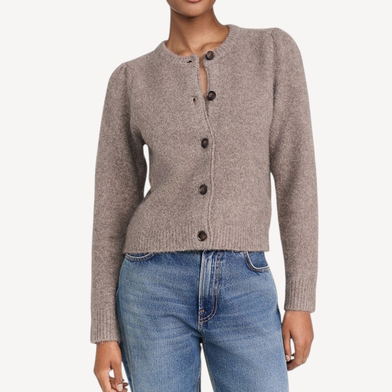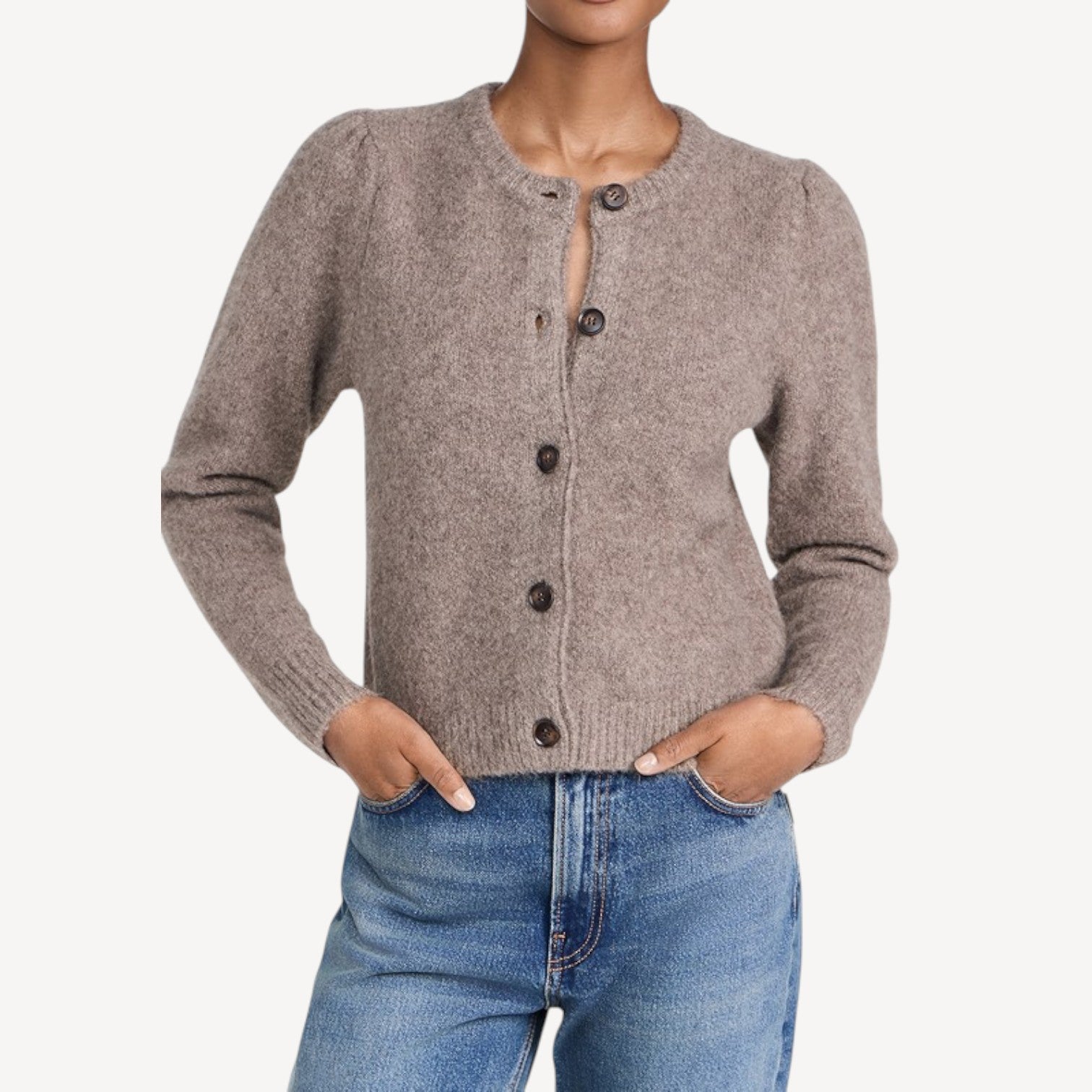 Davies | Classic Button-Up Women’s Cardigan – Long Sleeve Knit Sweater in Taupe
