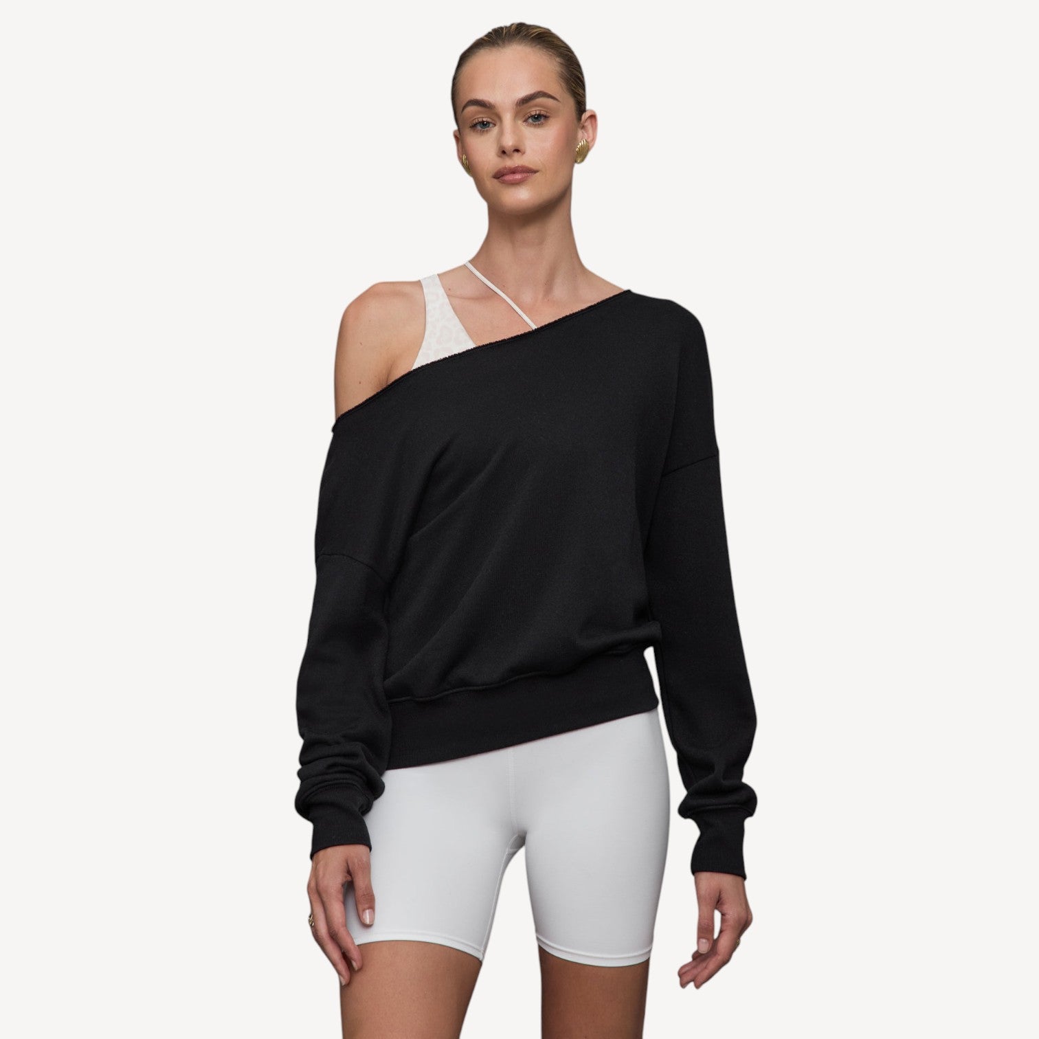Davies | Black One Shoulder Womens Jumper – Casual Off-Duty Style