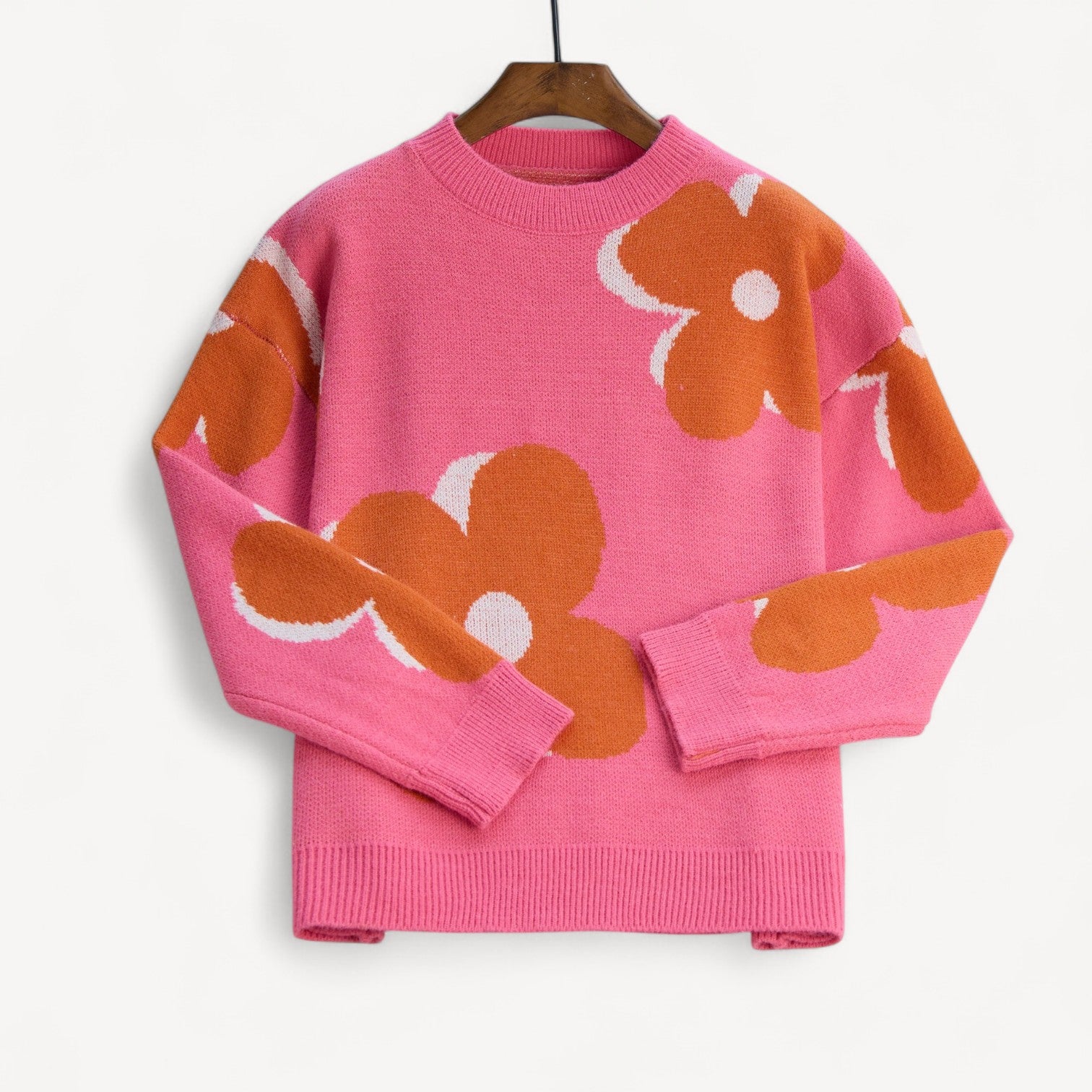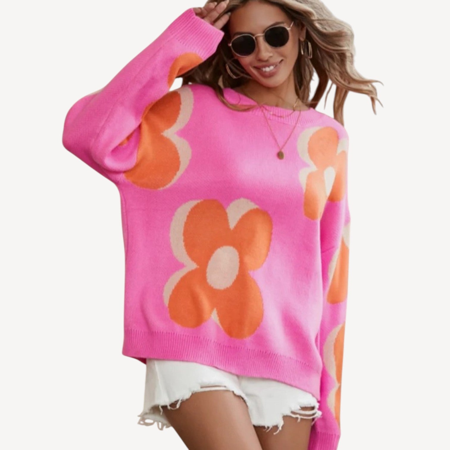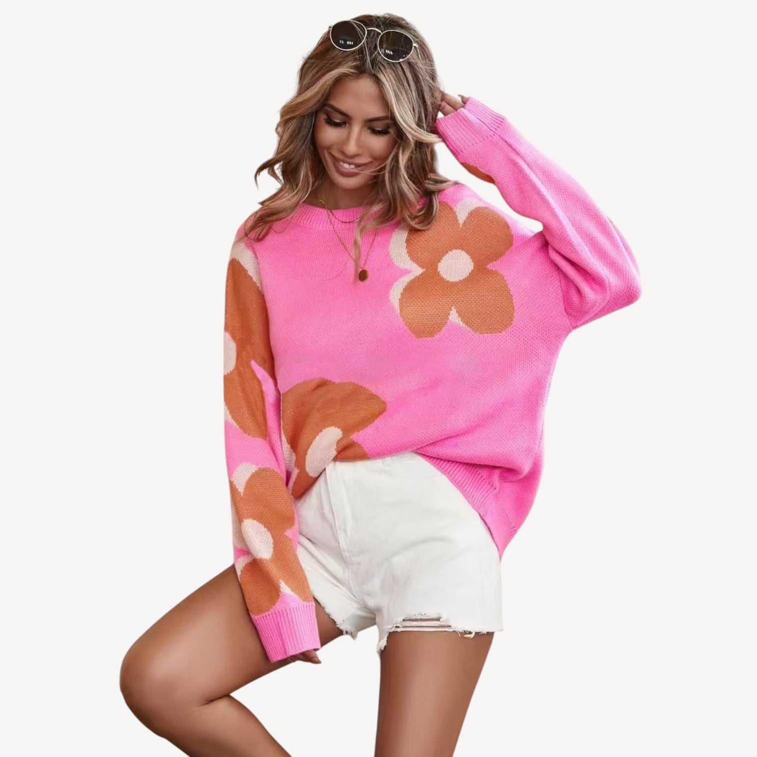 Davies | Oversized Floral Sweater for Women – Long Sleeve Crew Neck Knit Pullover