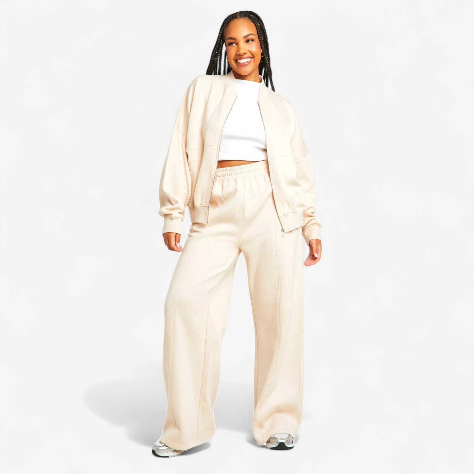 Davies | Womens Tracksuit Two Piece Set – Cropped Zip Jacket & Wide Leg Pants